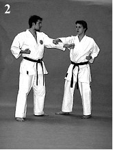 Сэмэтэ: Шаг в миги-мото-дати. Миги-тюдан-ой-дзуки. Укэтэ: Тэнсин правой ногой в хидари-мото-дати. Хидари-ути.
