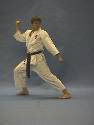 Хидари-тюдан-гяку-дзуки. Правый кулак отдернуть к правому боку.
